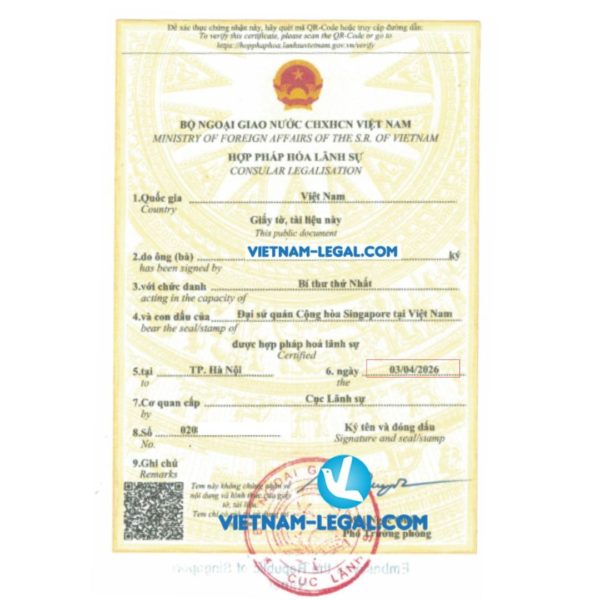 Legalization.vn provides consultancy services, apply for consular legalization, consular certification of papers and documents issued from Singapore for use in Vietnam