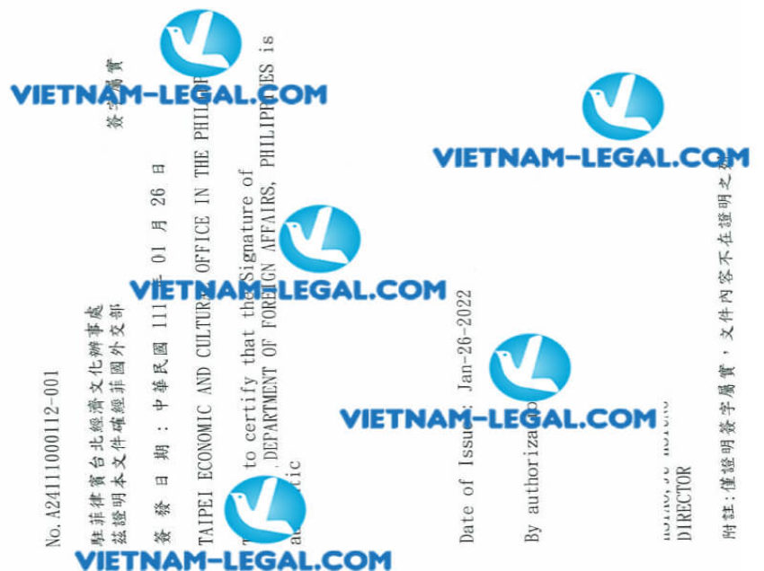 Results of consular legalization documents issued in Philippines (Marriage Certificate) used in Vietnam on 6.10.2021
