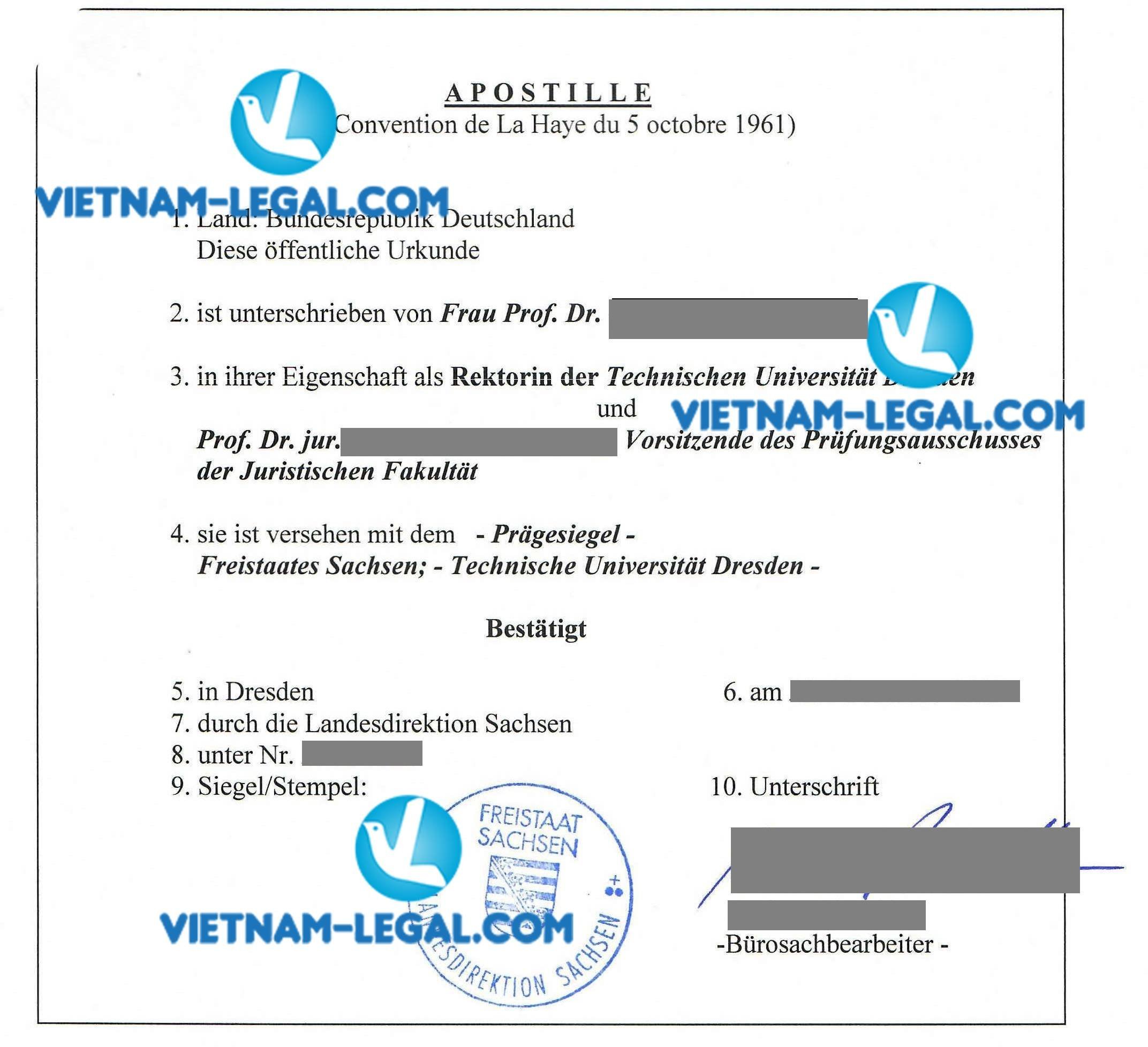 Legalization.vn provides consulting services and support for obtaining Apostille certification for documents issued in Germany for use in one of the member countries of the Hague Convention.